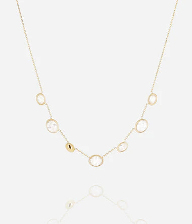 Collier en acier uni ou doré à l'or fin par ionisation, sur lequel sont serti des motifs ovales en acier et en zirconiums.