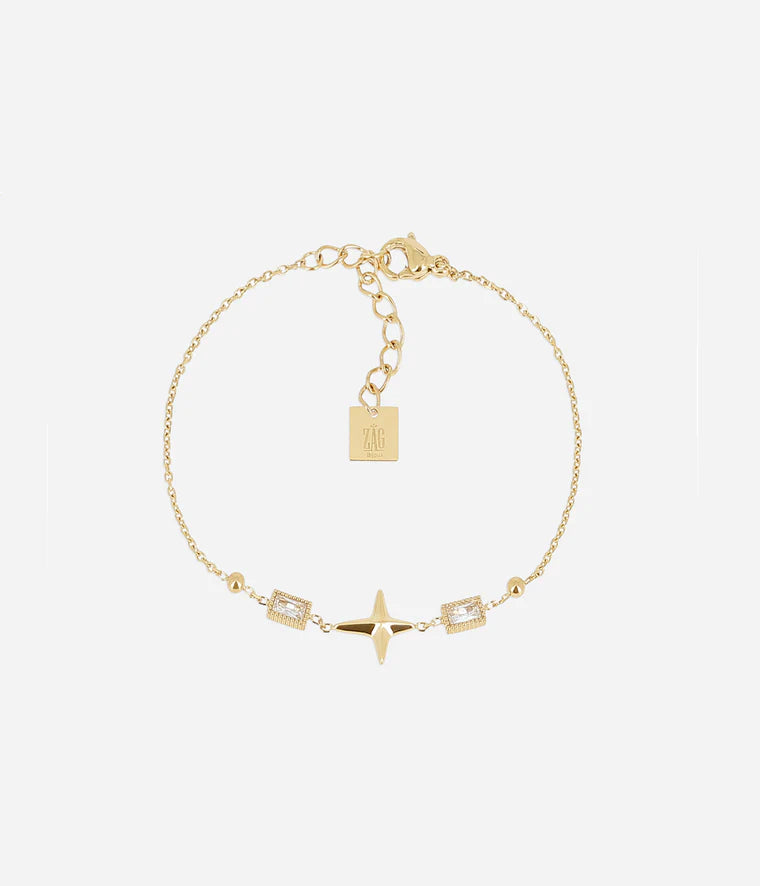 Bracelet en acier uni ou doré à l'or fin par ionisation serti de deux rectangles en zirconium et d'une étoile en acier au centre.