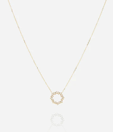 Collier en acier uni ou doré à l’or fin par ionisation serti d'un pendentif rond sertis de zirconiums.