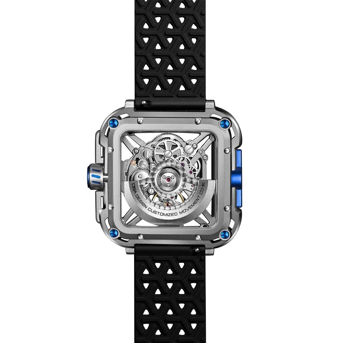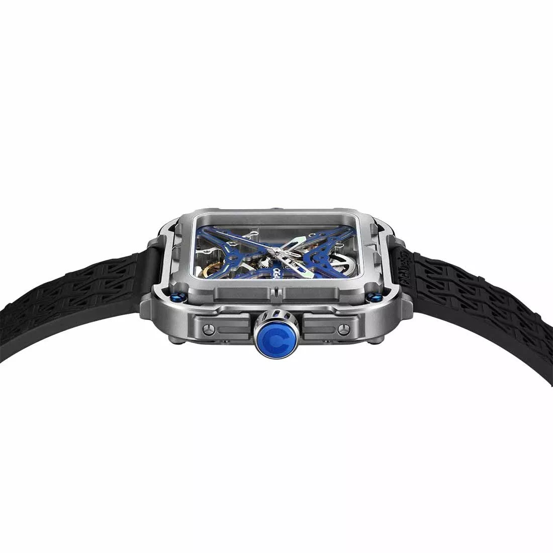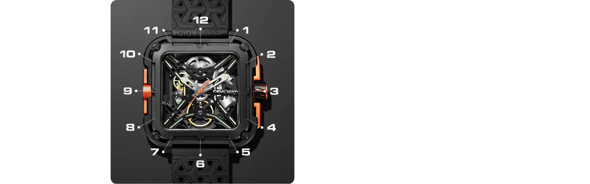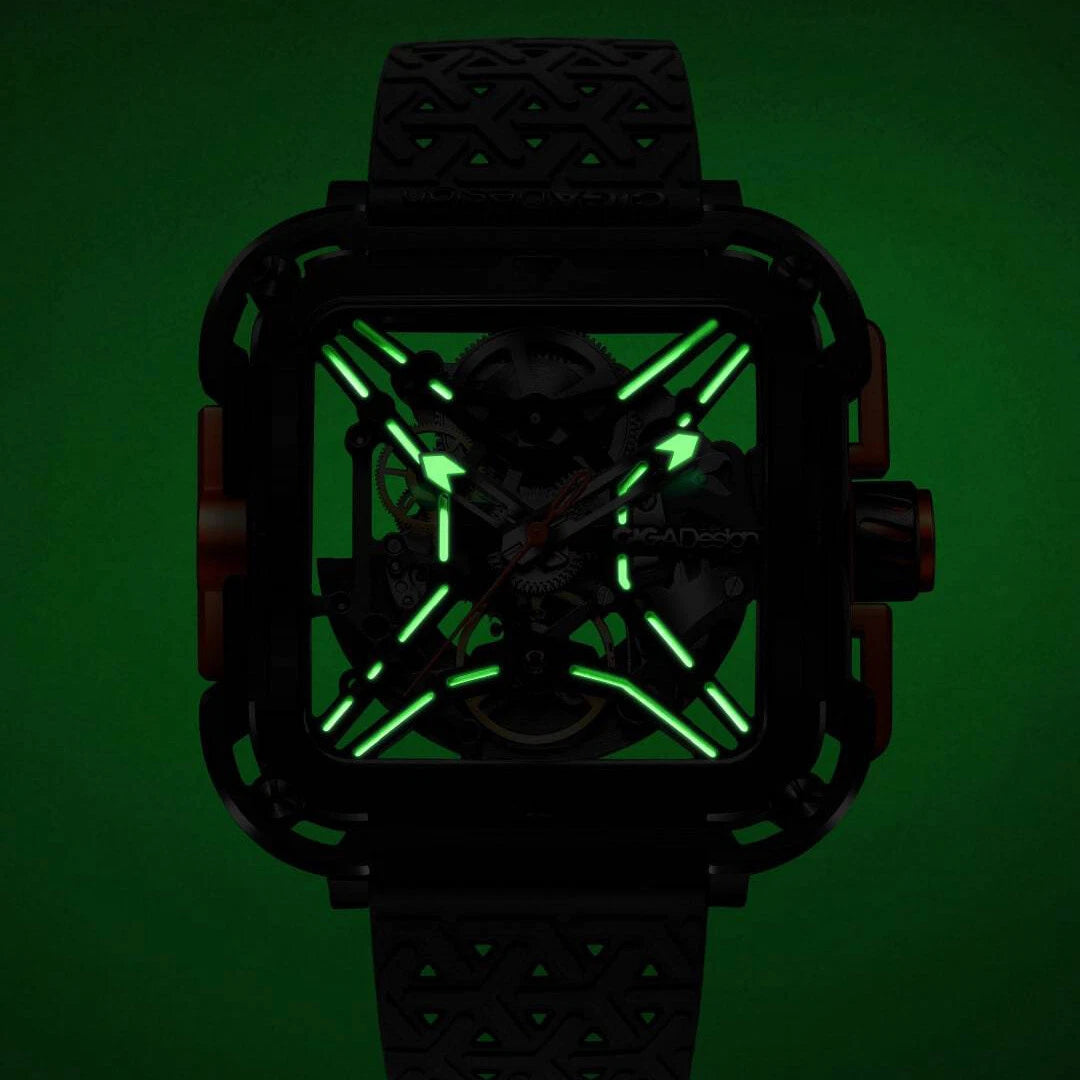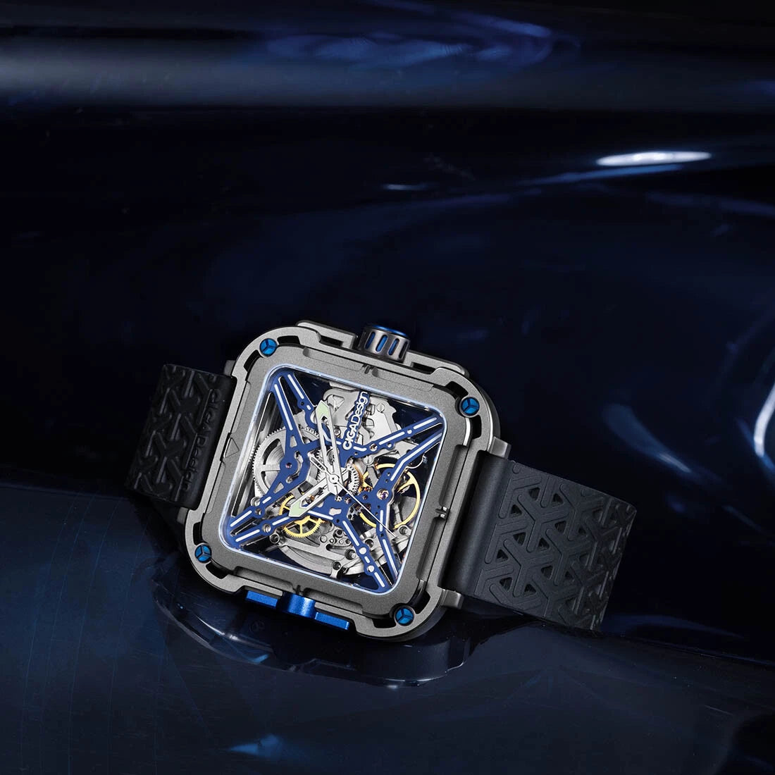 Le mouvement CD-01 de la série X, développé indépendamment, et le boîtier carré de style cyberpunk inspiré du gorille renferment quatre triangles pour former la structure la plus stable physiquement, et mettent en valeur sa beauté unique tout en assurant un mouvement stable.