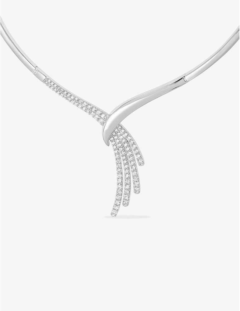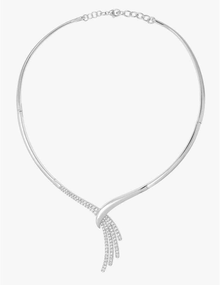 Ce collier rigide en argent rhodié se divise en plusieurs brins sertis d'oxydes de zirconium. Il mesure 40 cm plus 3 cm de chaîne. Ce collier habillera à merveille votre cou lors des plus belles occasions.