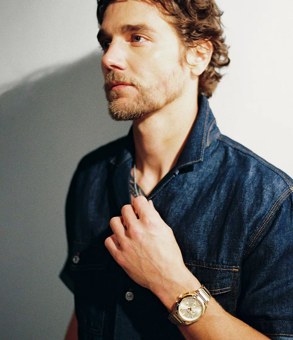 Dotée de tous les éléments intemporels d’un modèle chronographe classique, la montre Everett allie styles sportif et raffiné. Son audacieux cadran soleillé couleur champagne est logé dans un boîtier rond en acier inoxydable doré de 44 mm. Elle présente un bracelet uni intégré en acier inoxydable et un mouvement chronographe classique qui vous permet de respecter votre agenda. Portez-la comme pièce maîtresse ou avec une tenue habillée, où que vous alliez.