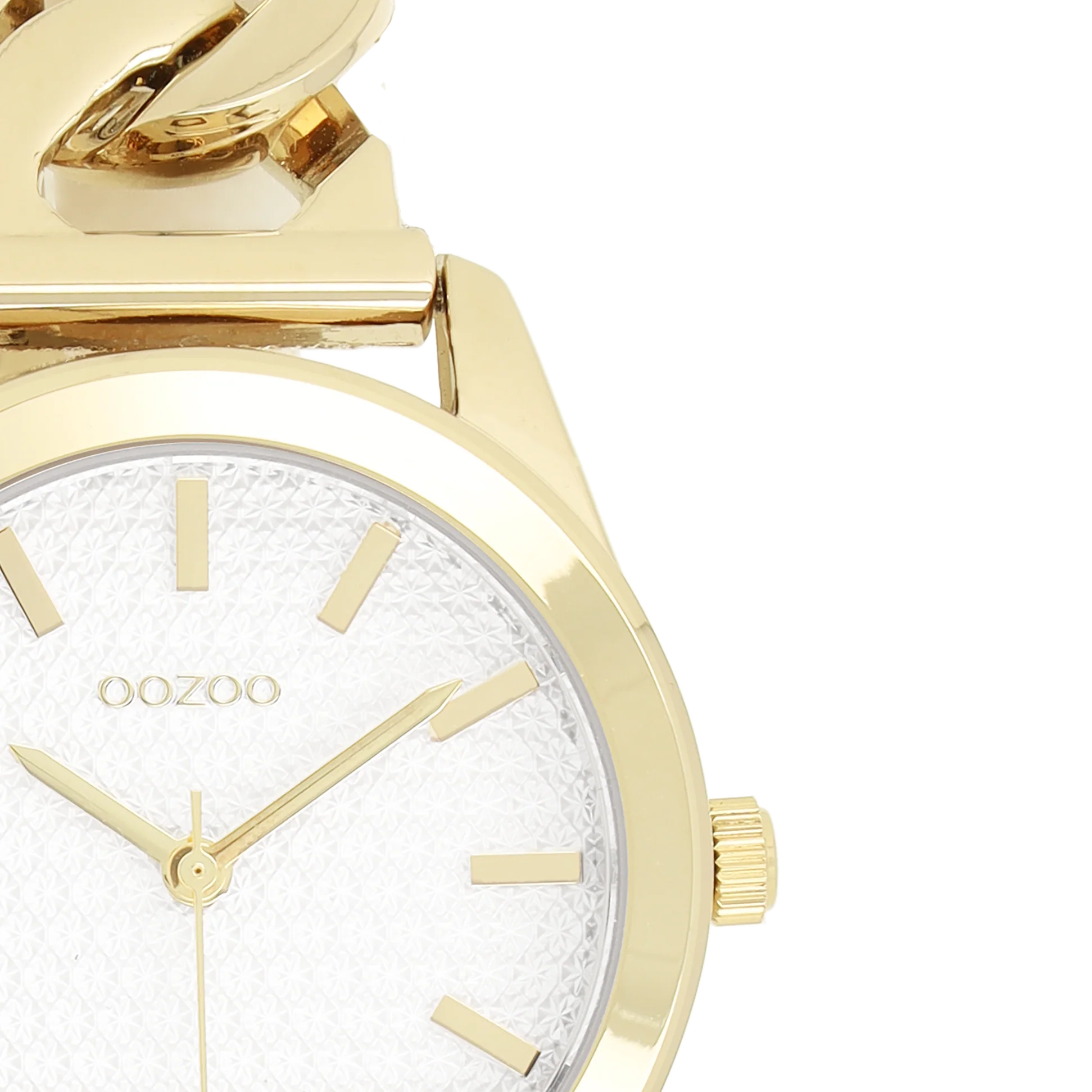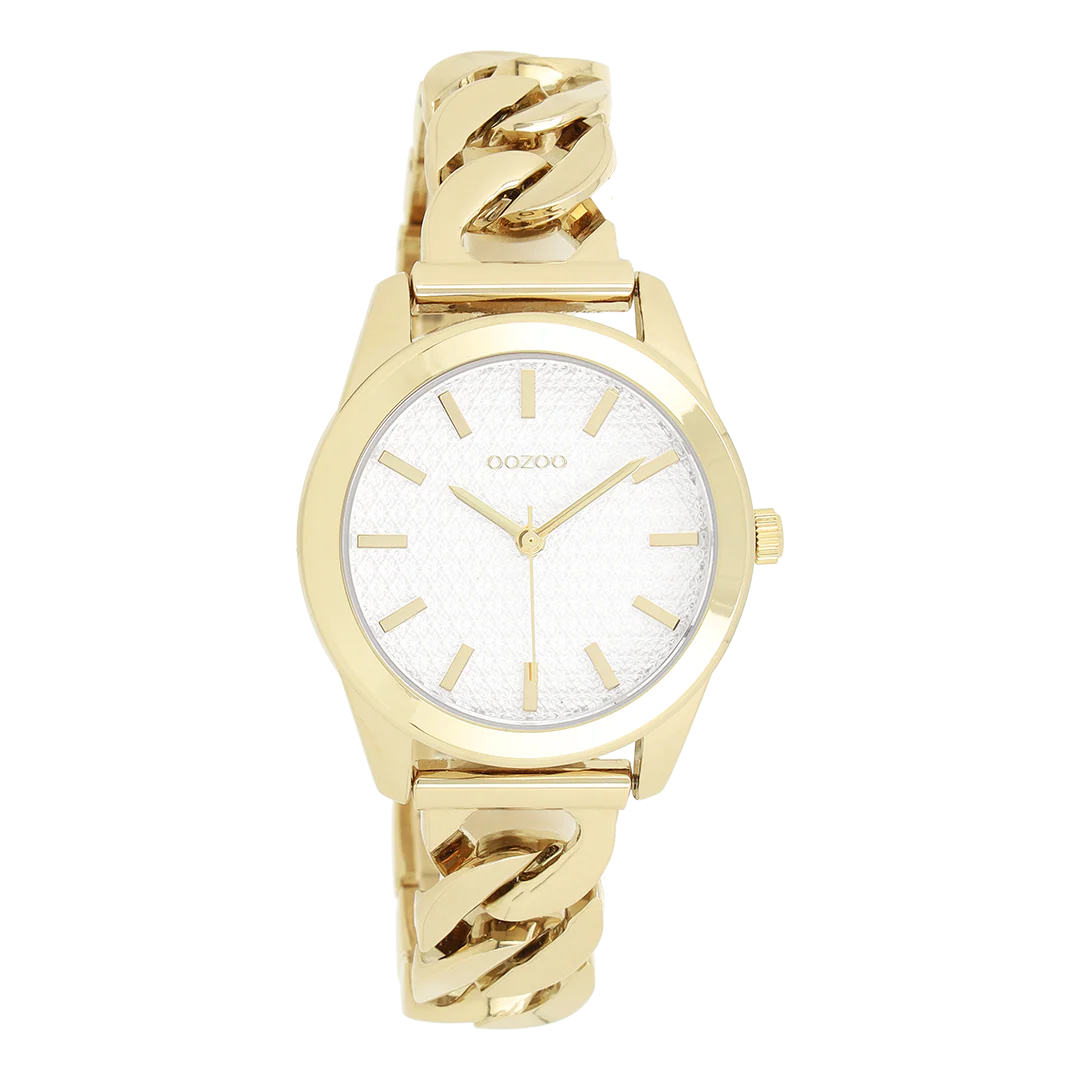 Distinguez-vous avec ce magnifique modèle femmes rond. Cette nouvelle création (C11419) est enjolivée d’un bracelet à petite chaîne couleur or et d’un boîtier tendance métal couleur or de 32 mm de diamètre. Faites sensation avec ce cadran blanc motif et un index couleur or rayures et des aiguilles assorti.