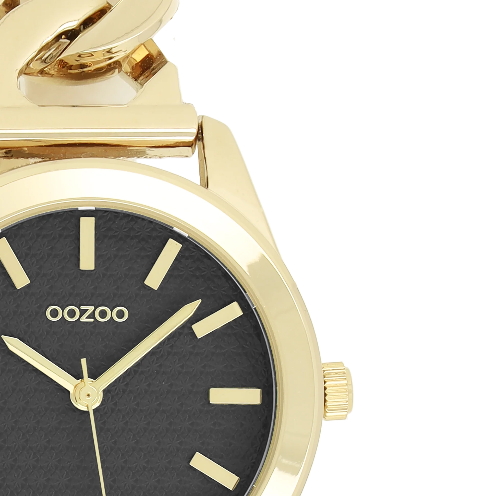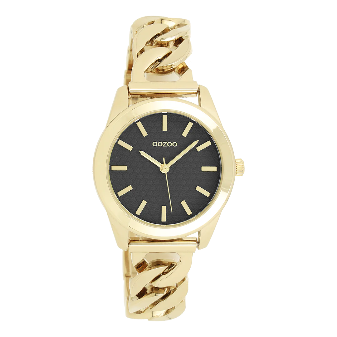 Distinguez-vous avec ce magnifique modèle femmes rond. Cette nouvelle création (C11422) est enjolivée d’un bracelet à petite chaîne couleur or et d’un boîtier tendance métal couleur or de 32 mm de diamètre. Faites sensation avec ce cadran noir motif et un index couleur or rayures et des aiguilles assorti.