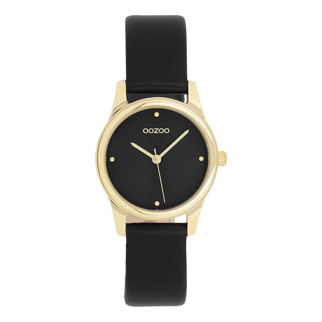 Affirmez votre style avec cette élégante montre ronde pour femme. Le modèle C11629 est doté d'un bracelet en cuir noir et d'un boîtier en métal doré de 28 mm. Son cadran noir soleillé, ses index et aiguilles dorées assortis vous assurent une allure résolument tendance.