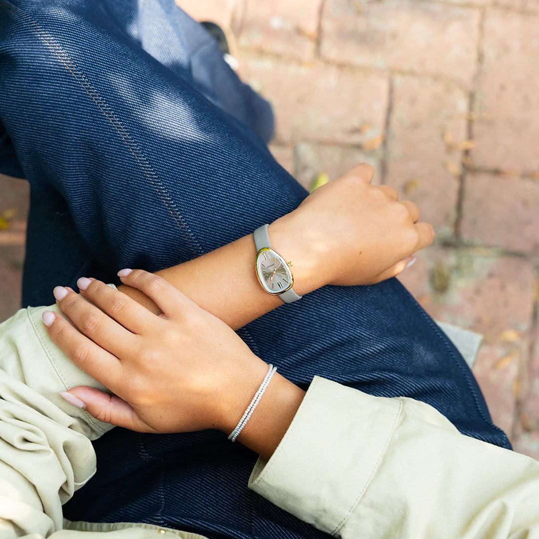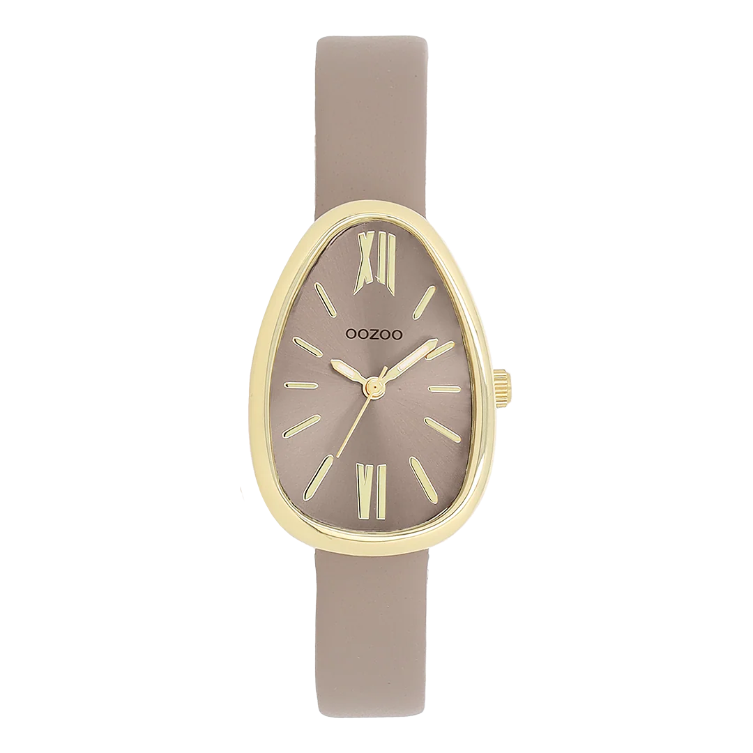 Affirmez votre style avec cette élégante montre pour femme de forme ovale. Le modèle C11637 possède un bracelet en cuir taupe et un boîtier en métal doré de 31 x 22 mm. Son cadran taupe soleillé, ses rayures dorées, ses chiffres romains et ses aiguilles assorties vous assurent une allure résolument tendance.