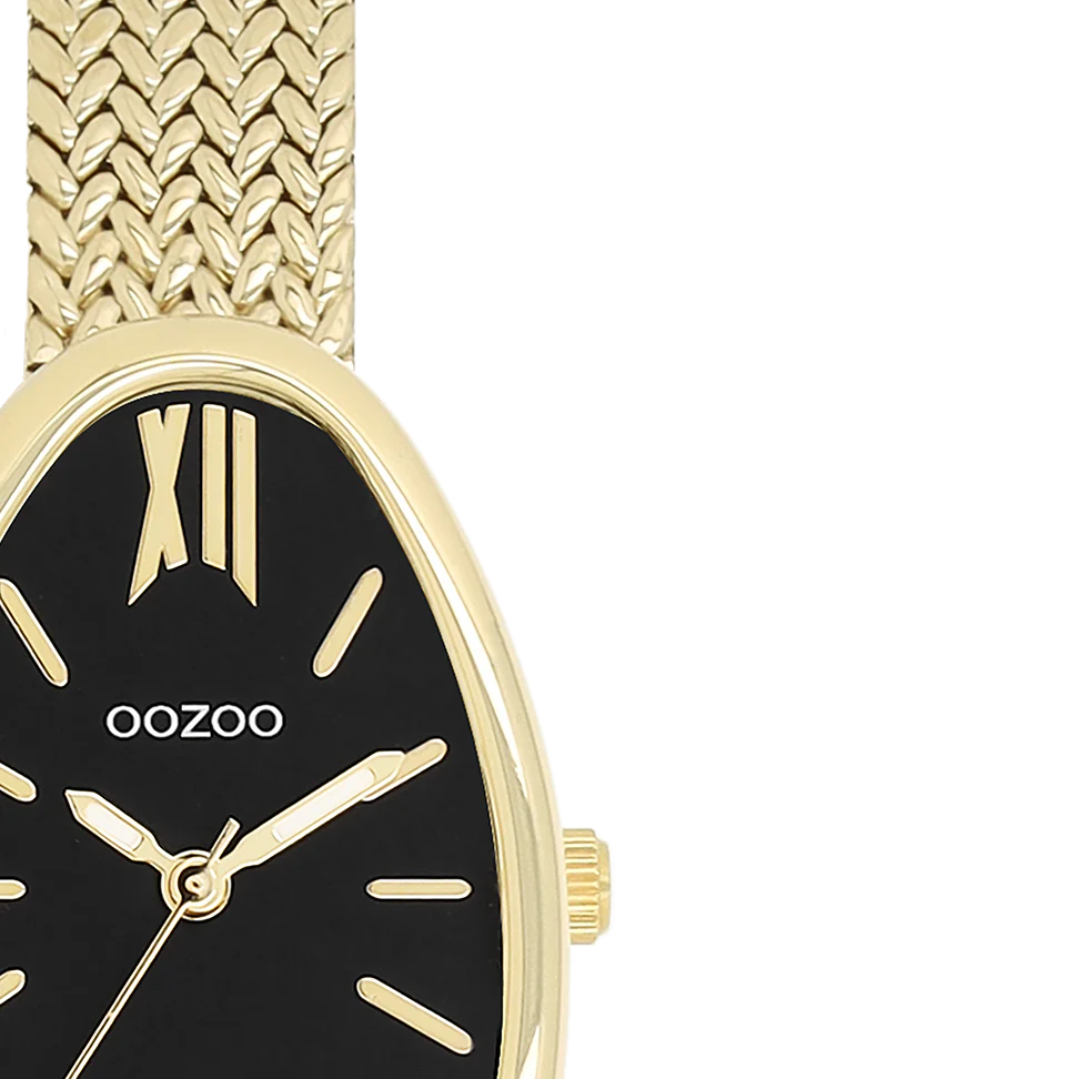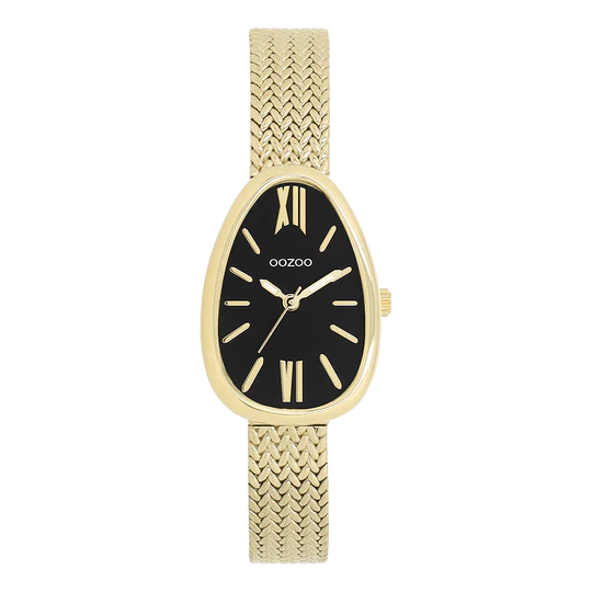 Affirmez votre style avec cette élégante montre pour femme en forme d'œuf. Le modèle C11643 est doté d'un bracelet en maille V en métal doré et d'un boîtier de 31 x 22 mm également en métal doré. Son cadran noir, ses rayures dorées, ses chiffres romains et ses aiguilles assorties vous assurent une allure résolument moderne. Cette montre, un indispensable de votre garde-robe.
