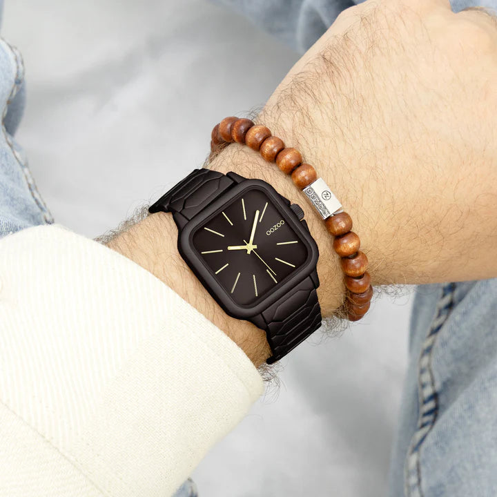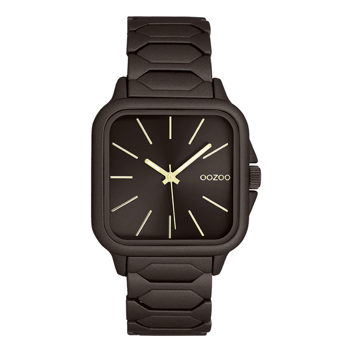Distinguez-vous avec ce magnifique modèle unisexe carré de la collection tendance OOZOO Timepieces. Cette nouvelle création (C11664) est enjolivée d’un bracelet en acier inoxydable marron foncé mat et d’un boîtier tendance mat marron foncé de 44x44 mm de diamètre. Faites sensation avec ce cadran marron foncé sunray et un index couleur or rayures et des aiguilles assorti. Cette montre est un incontournable de votre garde-robe et possède un verre minéral.