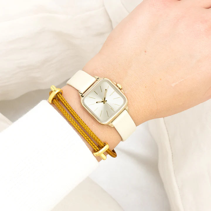 Distinguez-vous avec ce magnifique modèle femmes carré de la collection tendance OOZOO Timepieces. Cette nouvelle création (C11666) est enjolivée d’un bracelet en cuir sable et d’un boîtier tendance métal couleur or de 34x34 mm de diamètre. Faites sensation avec ce cadran sable sunray et un index couleur or rayures et des aiguilles assorti. Cette montre est un incontournable de votre garde-robe et possède un verre minéral.