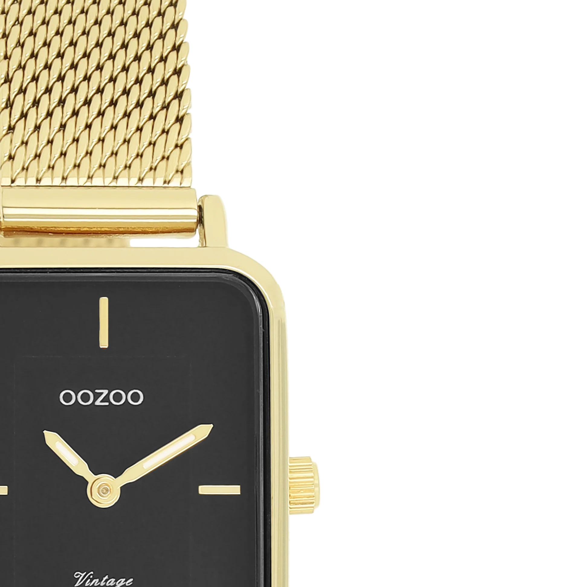 La grâce et le glamour sont les éléments centraux de cette série tendance. Ce modèle C20354 d'OOZOO Vintage rectangle est incontestablement l’accessoire incontournable pour cette saison! Cette montre femmes est aussi bien sophistiquée que confortable à porter grâce à son boitier rectangle en métal couleur or de 24x28 mm et son cadran noir . Le bracelet en mesh couleur or fait de cette horloge un accessoire tendance à porter au quotidien! Cette montre ajoutera indéniablement de l'éclat à votre tenue.