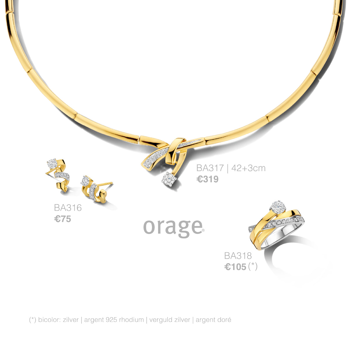 Collier parure en plaqué or et zirconiums de la marque belge Orage