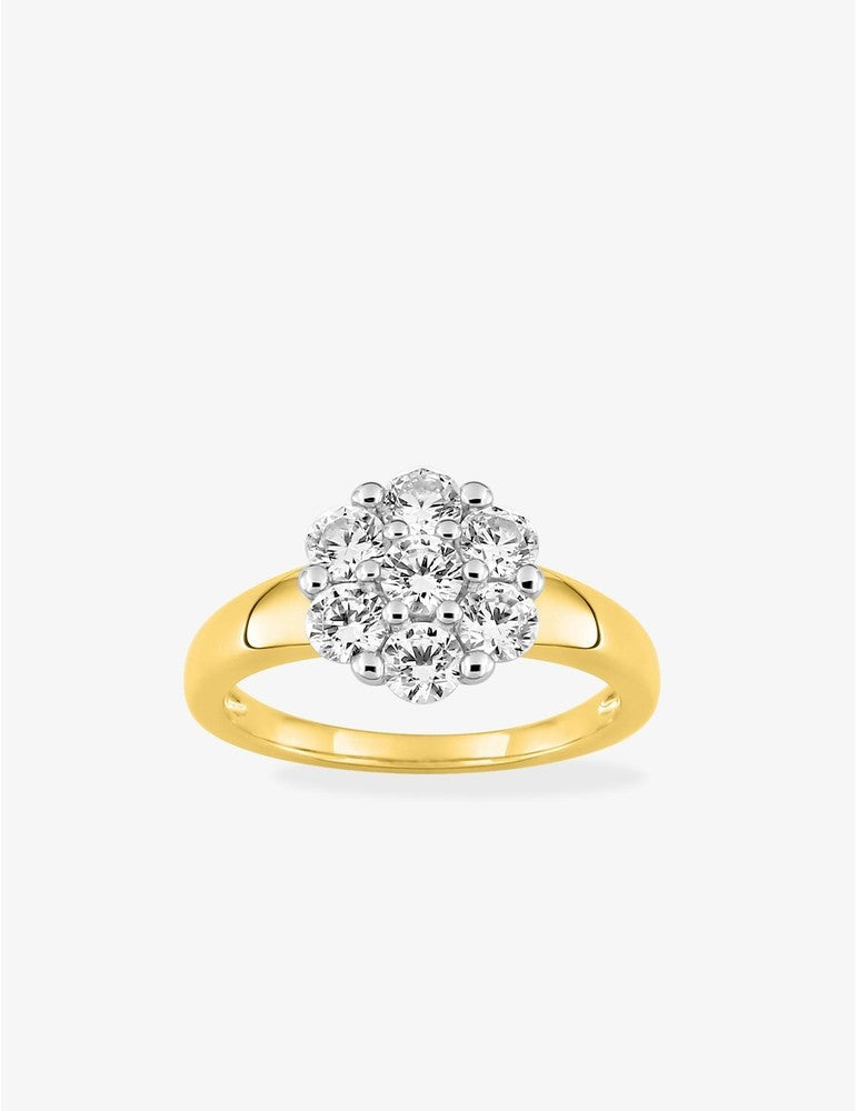 Bague en plaqué or et rhodium ornée d'oxydes de zirconium blancs disposés en fleur. Cette bague au design floral saura sublimer toutes vos tenues grâce à ses pierres scintillantes.