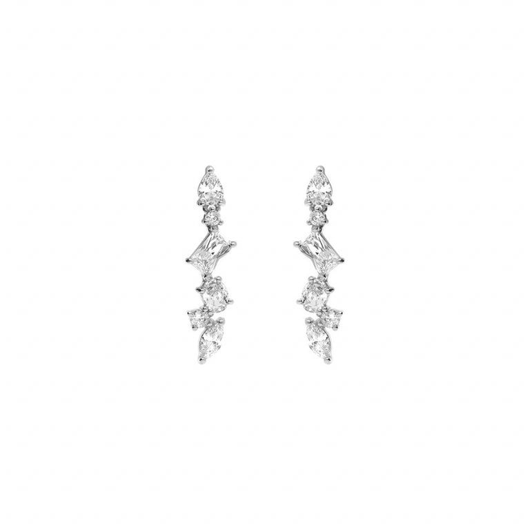 Boucles d'oreilles en argent rhodié et zirconiums.