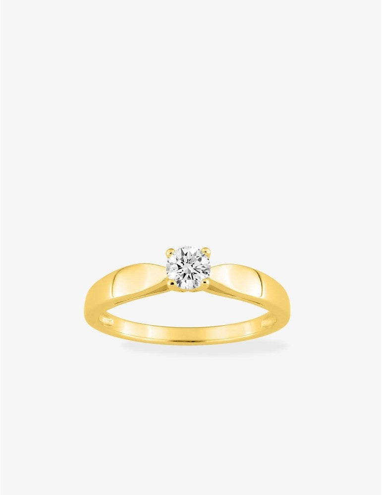 Ce solitaire en plaqué or arbore un éclatant oxyde de zirconium de 4 mm de diamètre serti griffes. Cette bague est un incontournable qui apportera élégance et éclat à vos mains.