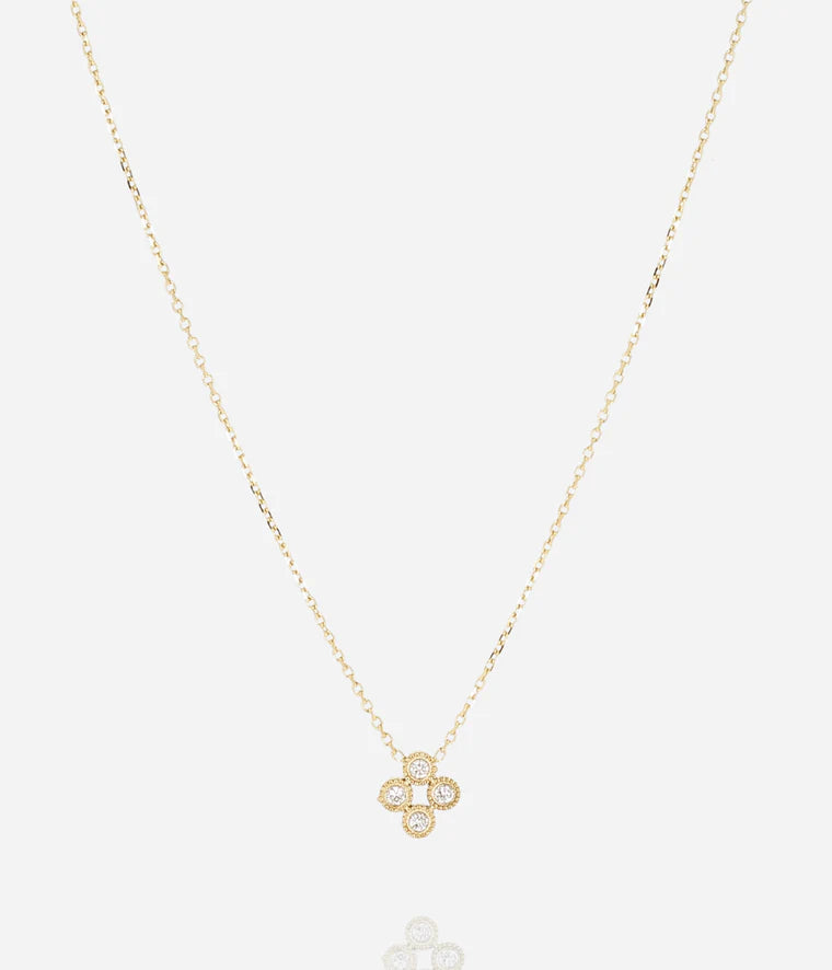 Collier en acier uni ou doré à l'or fin par ionisation serti d'une fleur composée de 4 petits ronds en zirconiums.