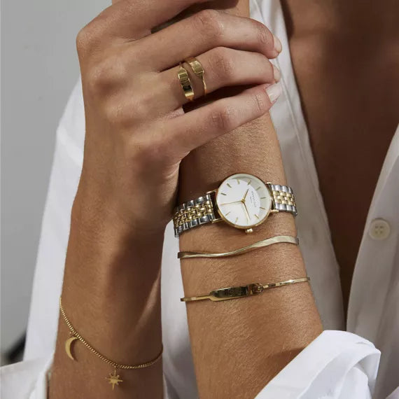 - Matière et couleur du bracelet: acier inoxydable bicolore plaqué or 23k - Or